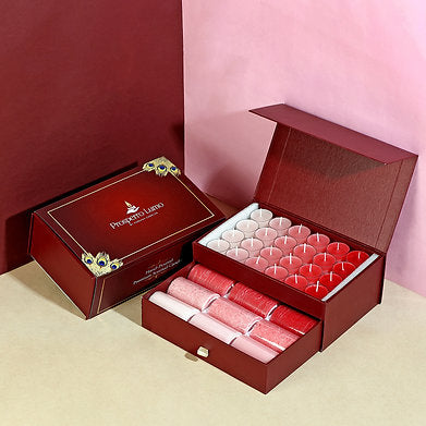 Prospero Lumo By Parkash Candles Introducing our Handcrafted Paraffin Wax Luxury Scented Candles Gift Set, a true indulgence for candle lovers seeking a sensory journey of exquisite aromas and beautiful craftsmanship. This thoughtfully curated set includes scented tealights and a scented pillar candle, meticulously handcrafted to create an enchanting atmosphere in your home or to make a perfect gift for someone special. Each candle in this set is made from premium paraffin wax, carefully chosen for its clean and steady burn. The high-quality wax ensures a longer-lasting candle, allowing you to enjoy the captivating scents for extended periods of relaxation and tranquility. The set includes scented tealights, designed to infuse smaller spaces with a subtle yet inviting fragrance. These tealights add a touch of ambience to your living room, bedroom, or bathroom, creating a warm and cozy atmosphere for intimate moments or rejuvenating self-care rituals. The scented pillar candle in the set serves as the centerpiece, emanating a captivating aroma that envelops your entire space. Handcrafted with precision and attention to detail, the pillar candle exudes elegance and sophistication, making it a stunning addition to your home décor. Whether you treat yourself or surprise a loved one, the Handcrafted Paraffin Wax Luxury Scented Candles Gift Set is the epitome of refined luxury and aromatic pleasure. Unwind, rejuvenate, and create an enchanting ambiance with this meticulously crafted collection that brings warmth, tranquility, and style to any space.