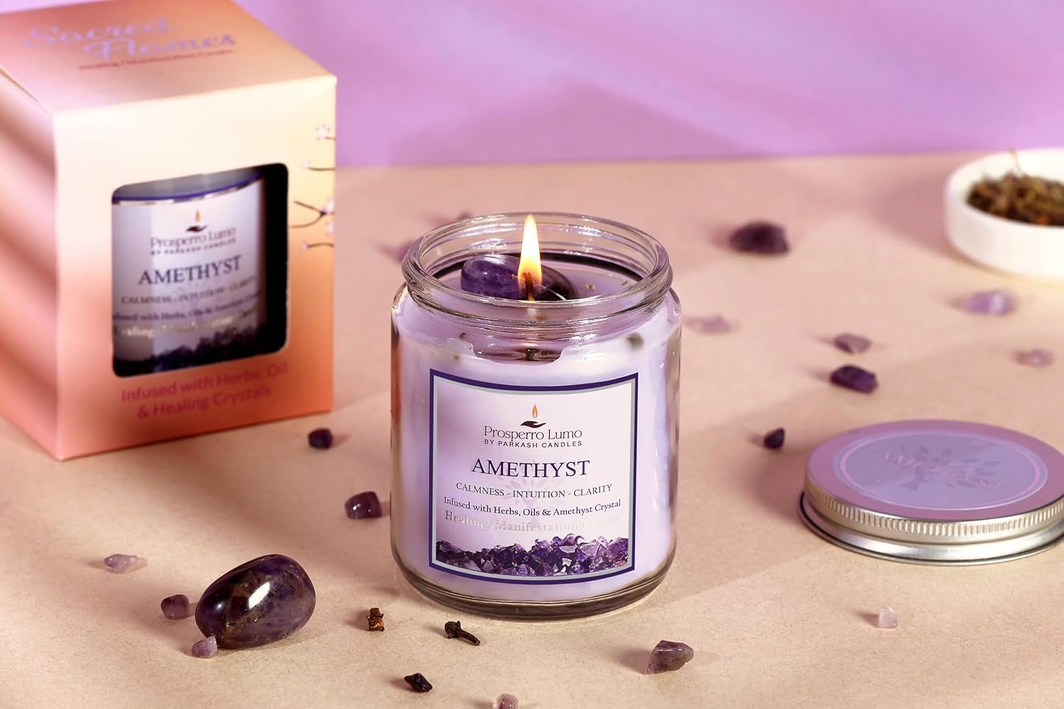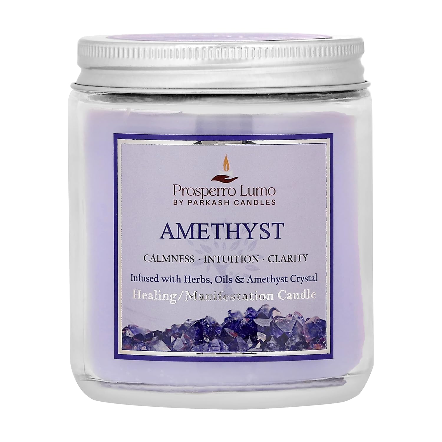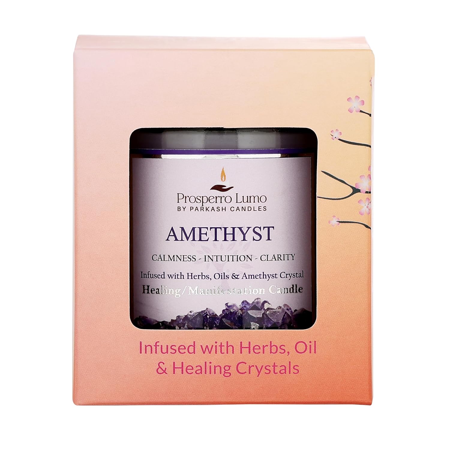 PROSPERRO LUMO by Parkash Candles Crystal Scented Jar Candle โ Infused with Herbs & Healing Crystals | Calmness, Intuition & Clarity | Paraffin Wax | Gift Box | 30+ Hour Burn Time |