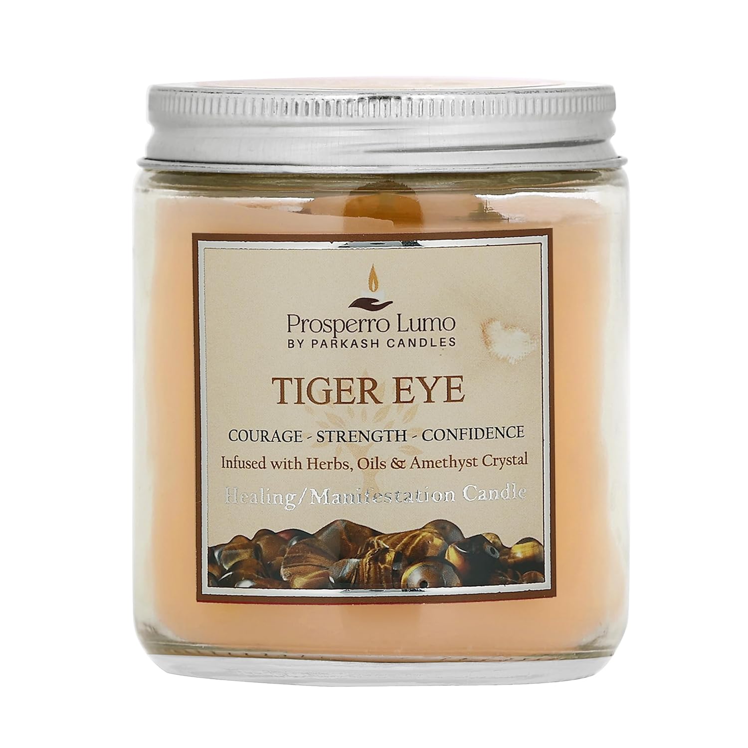 PROSPERRO LUMO by Parkash Candles Crystal Scented Jar Candle โ Infused with Herbs & Healing Crystals | Calmness, Intuition & Clarity | Paraffin Wax | Gift Box | 30+ Hour Burn Time | (Tiger Eye)