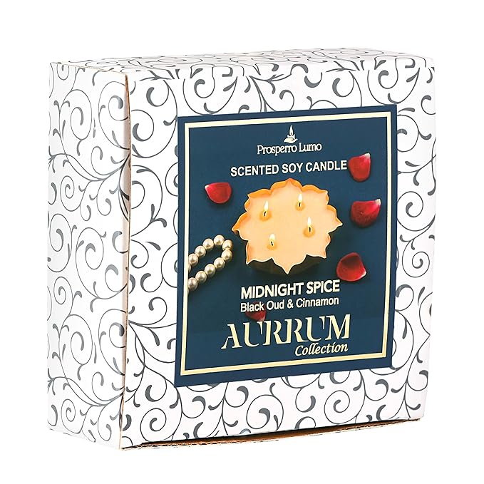 - Immerse yourself in the luxurious scent of Black Oudh & Cinnamon with the Luxury Small Golden Plate 4 Wick Premium Scented Bowl Candle—a perfect blend of elegance, fragrance, and warmth.