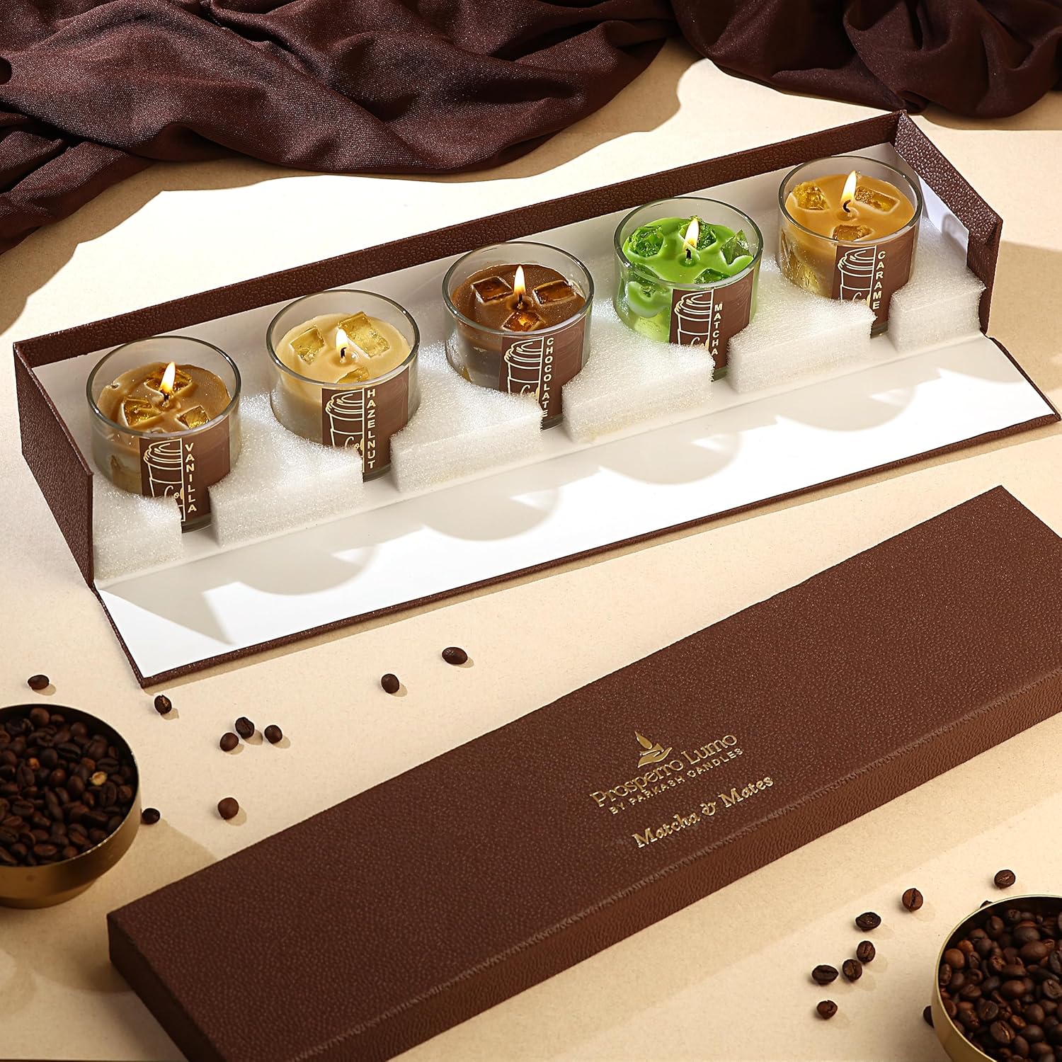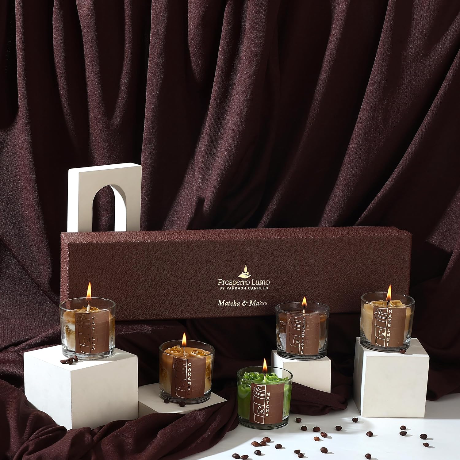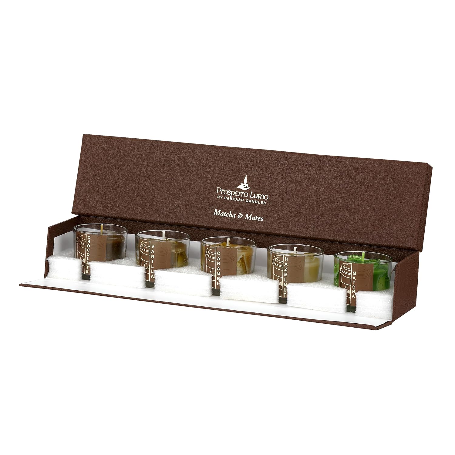 PROSPERRO LUMO by Parkash Candles Matcha & Mates Candle Set | 5 Coffeehouse-Inspired Jar Candles (100g Each) | Paraffin & Gel Wax | 10 Hr Burn Each